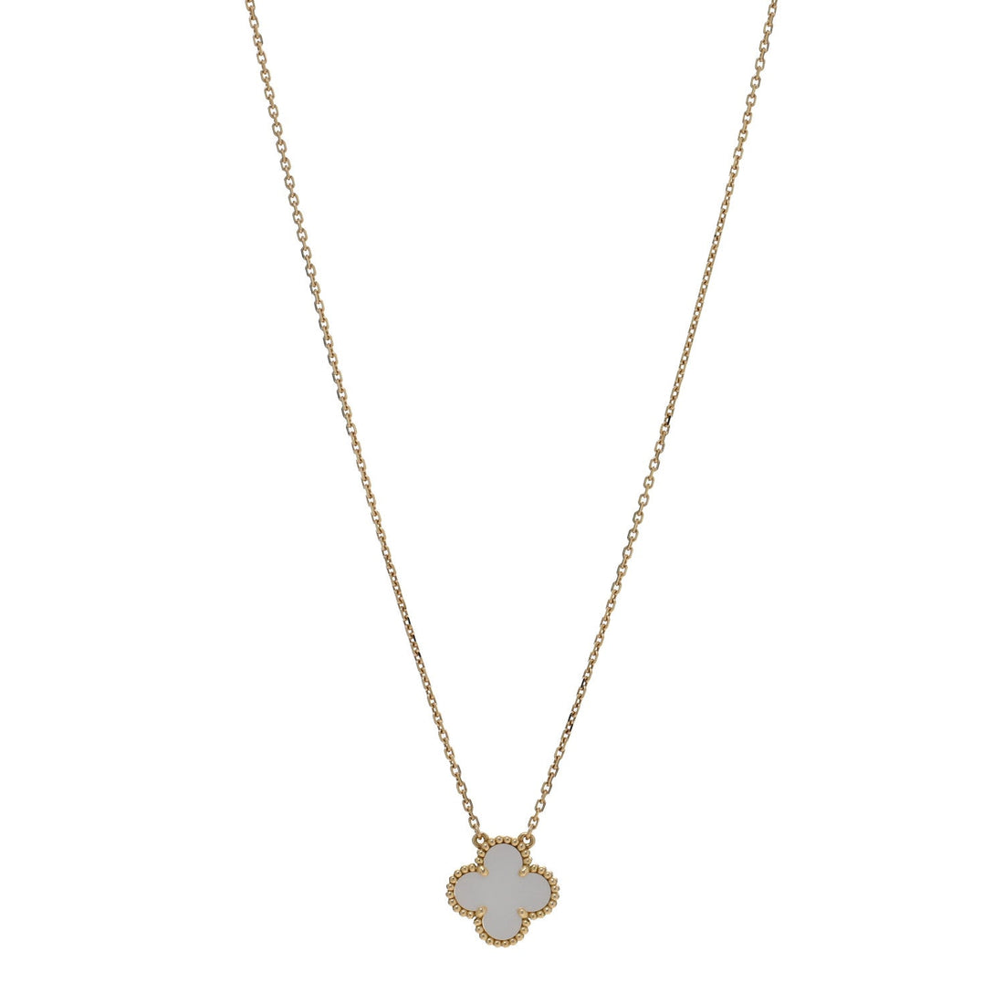 18K Yellow Gold Mother of Pearl Vintage Alhambra Pendant Necklace