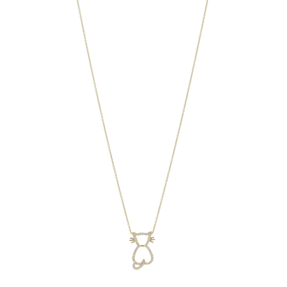 18K Yellow Gold Diamond Tiny Treasures Cat Pendant Necklace