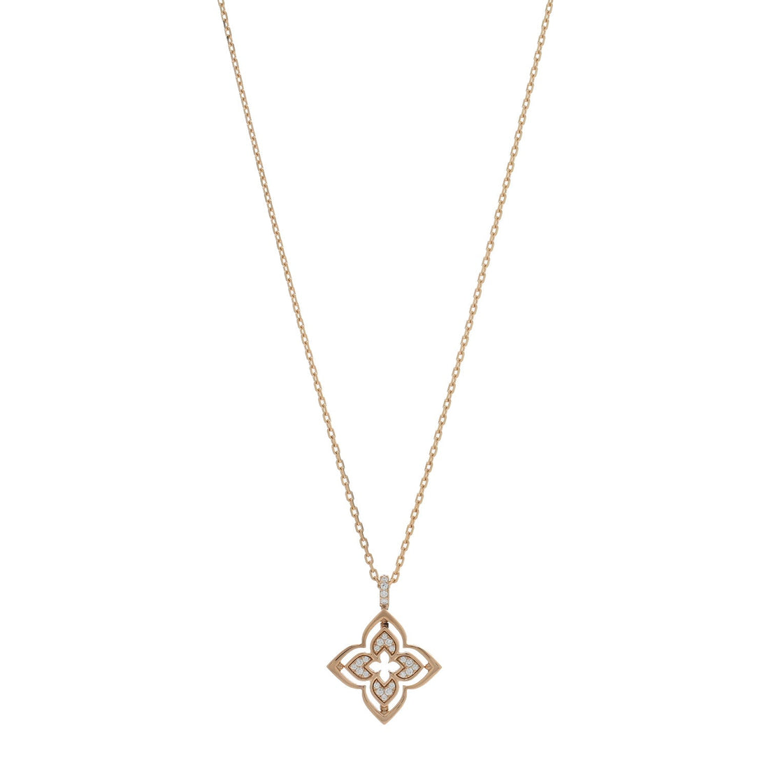 18K Rose Gold Diamond Mother of Pearl Small Venetian Princess Pirouette Pave Pendant Necklace