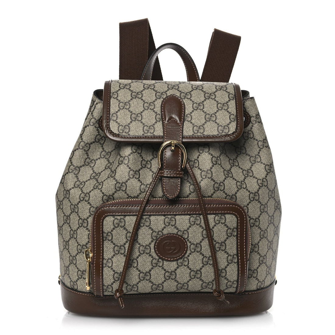 GG Supreme Monogram Azalea Calfskin Retro Interlocking G Buckle Backpack Beige Ebony Brown Sugar