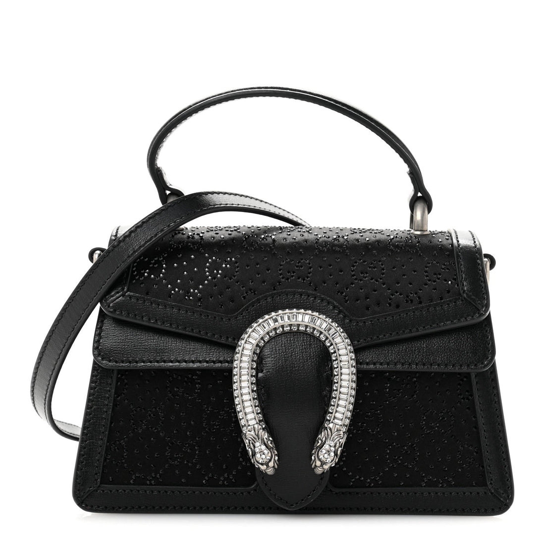 Satin Crystal GG Monogram Mini Dionysus Top Handle Bag Black