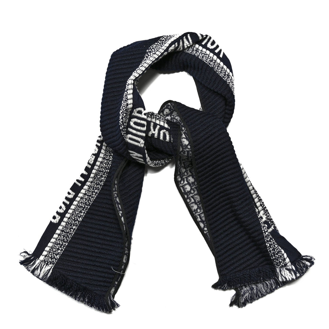 Wool Silk Oblique University Reversible Scarf Navy Blue