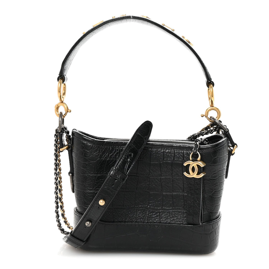 Calfskin Crocodile Embossed Small Gabrielle Cocodile Hobo Black