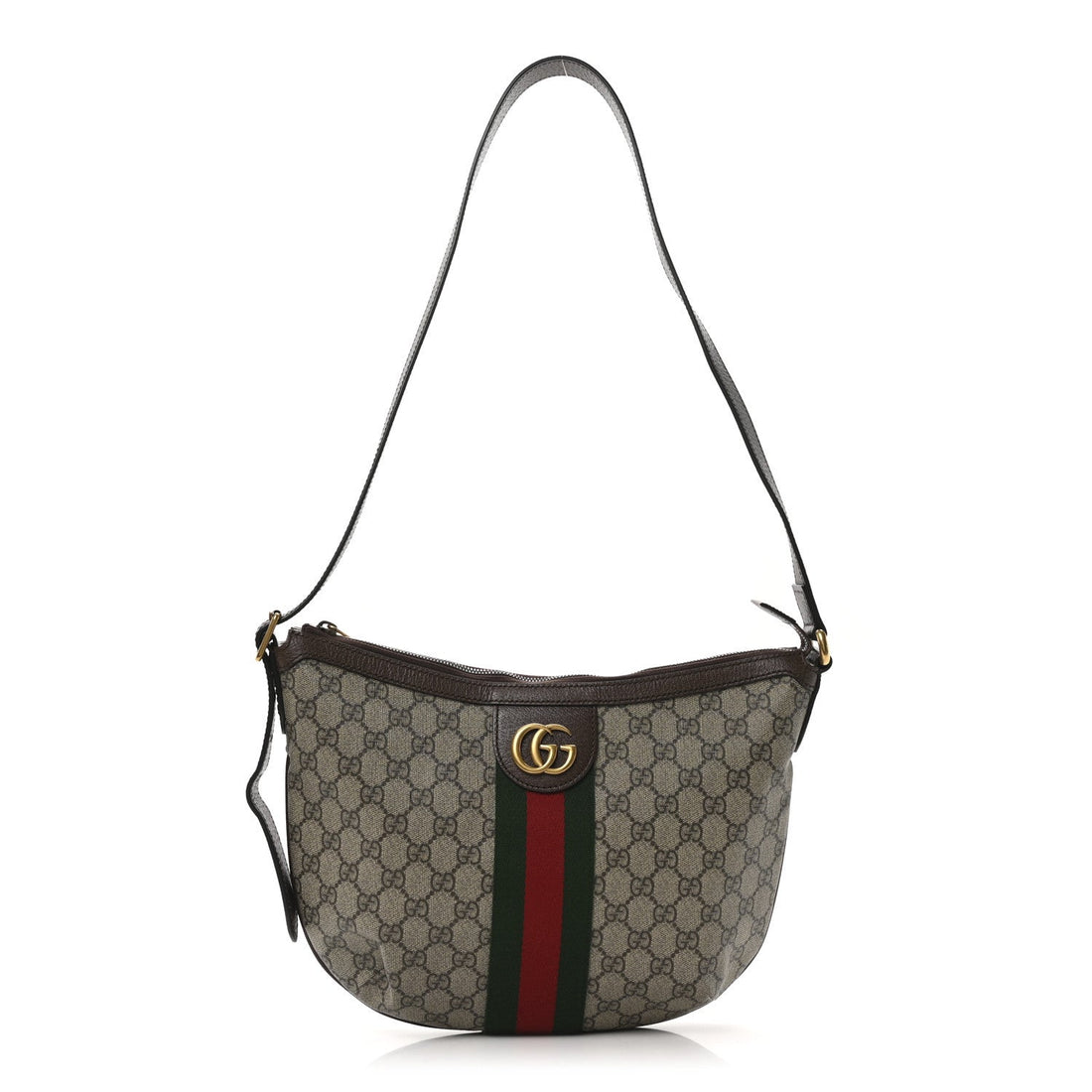 GG Supreme Monogram Web Small Ophidia Half Moon Hobo Brown