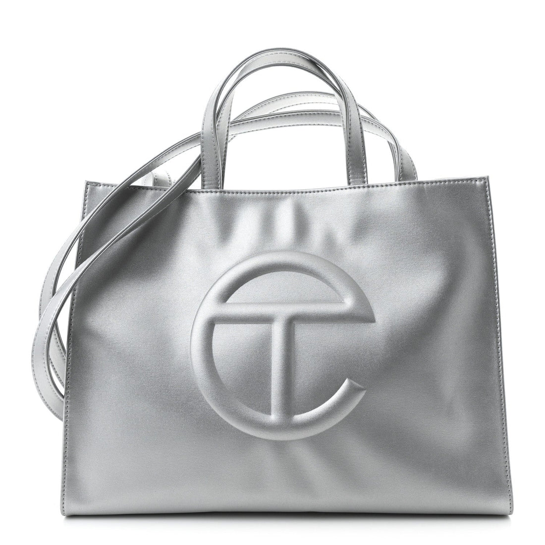 Metallic Vegan Leather Medium Shopping Bag Silver