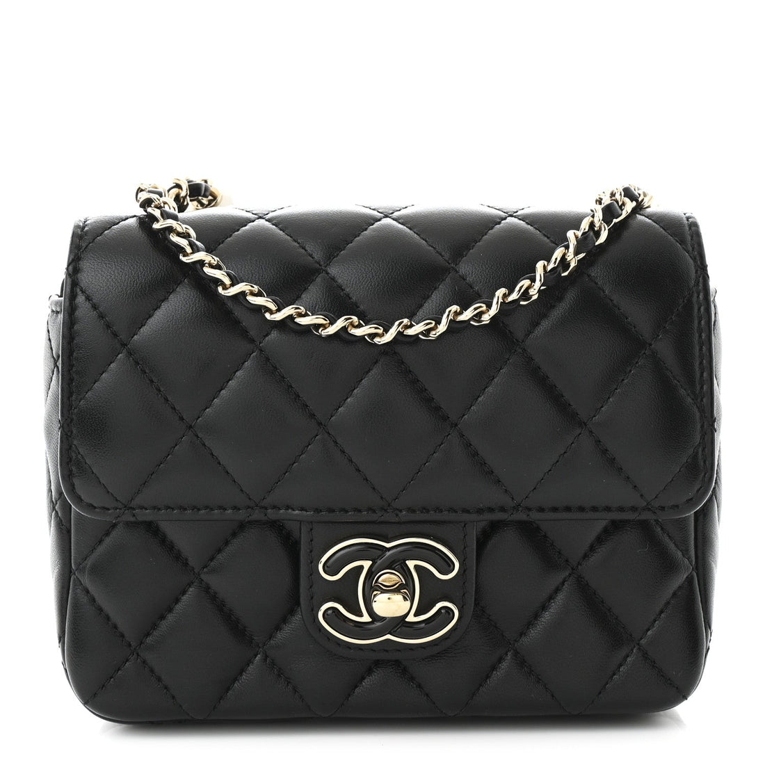 Lambskin Resin Quilted Mini Heart Square Flap Black