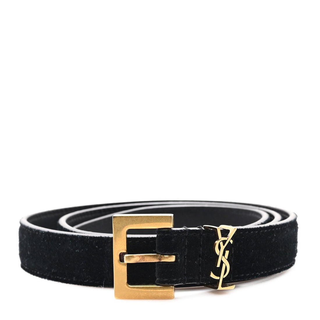 Suede Monogram Cassandre Extra Thin Square Buckle Belt 75 30 Black