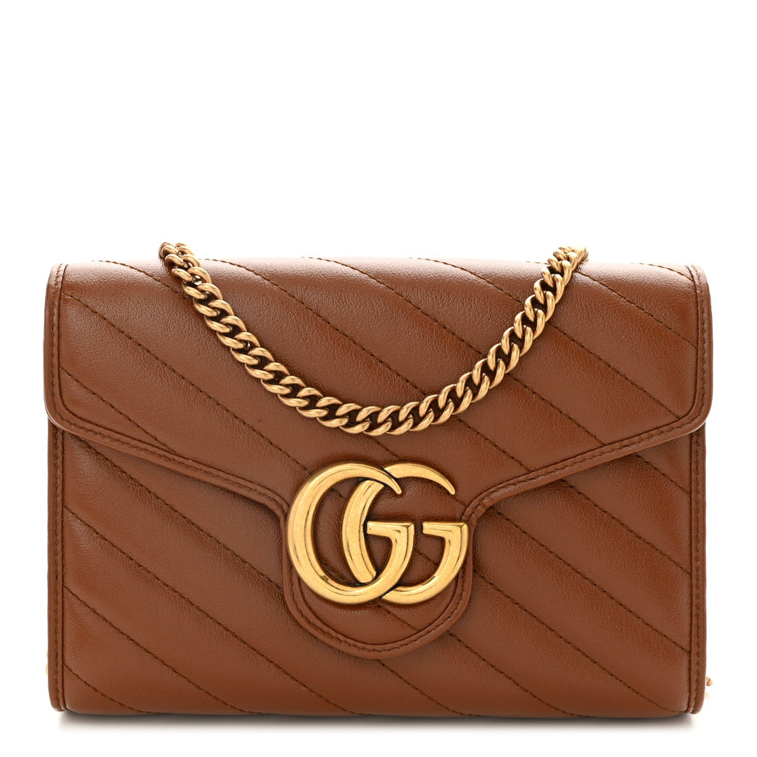 Azalea Calfskin Matelasse Diagonal GG Marmont Chain Wallet Cuir