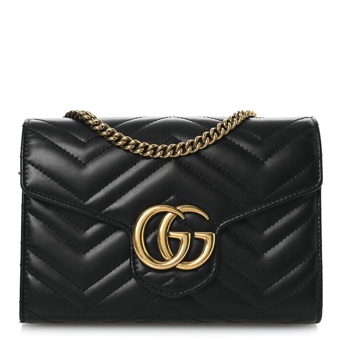 Calfskin Matelasse GG Marmont Chain Wallet Black