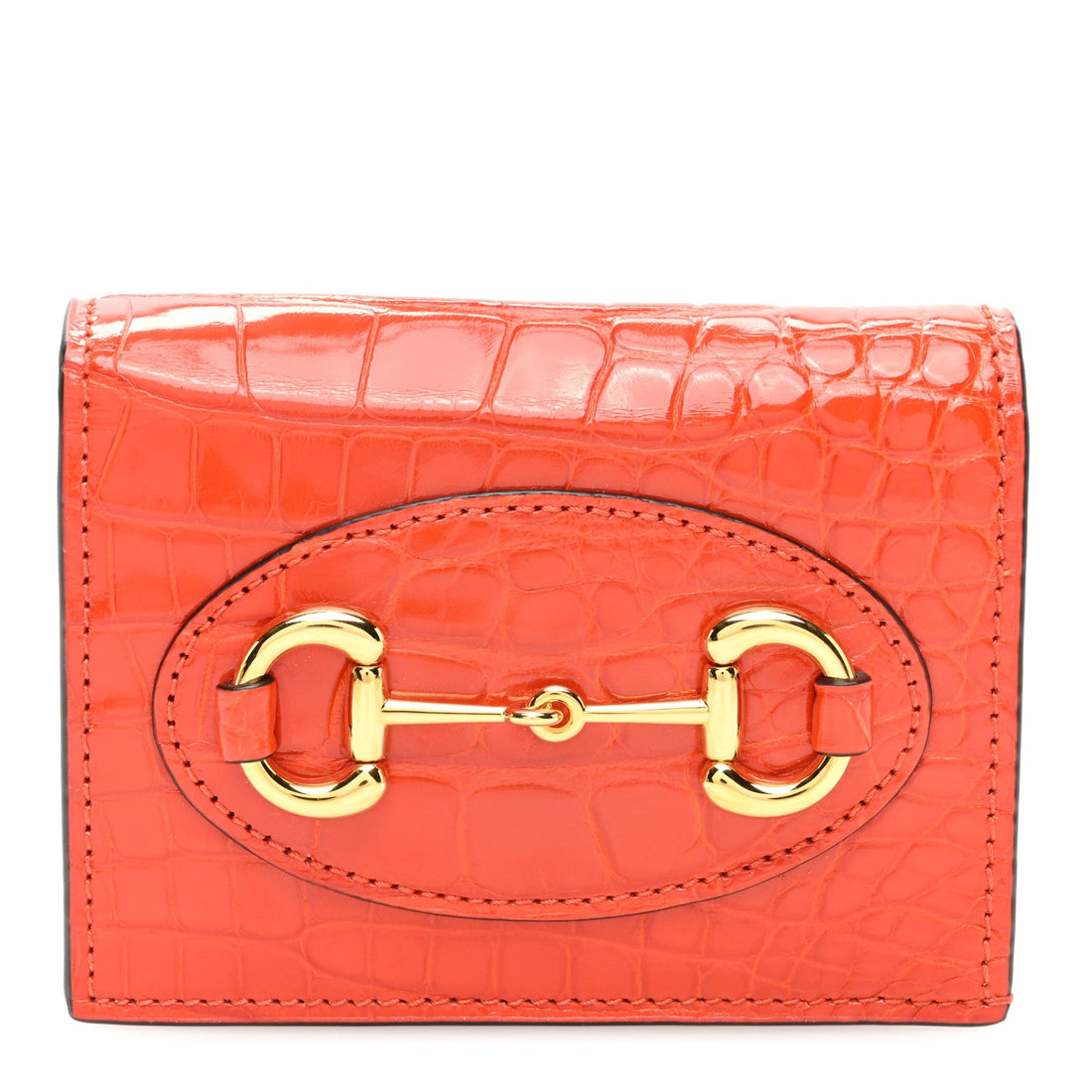 Boarded Plutone Crocodile Horsebit 1955 Card Case Wallet Sun Orange