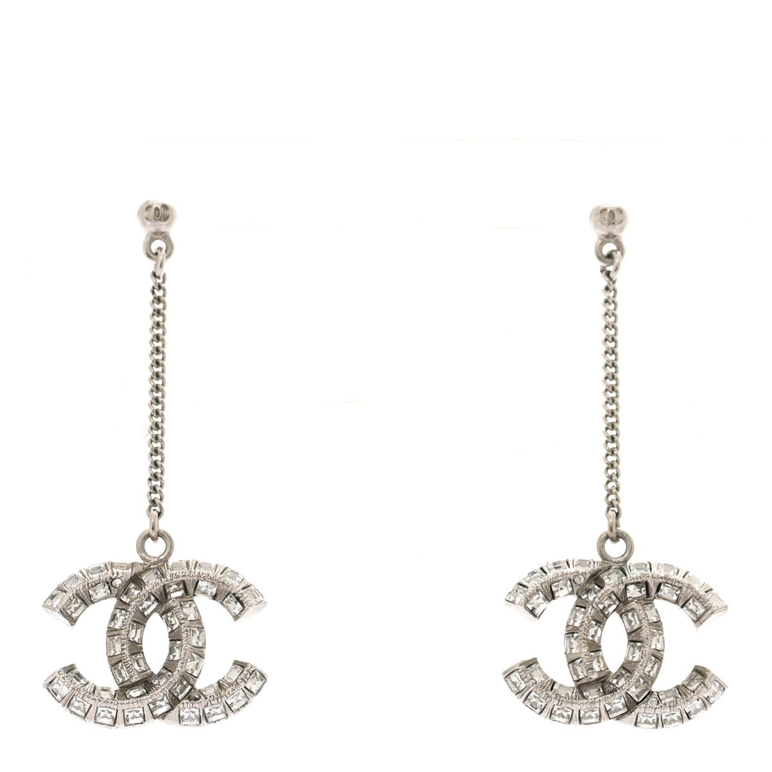 Baguette Crystal CC Drop Earrings Silver