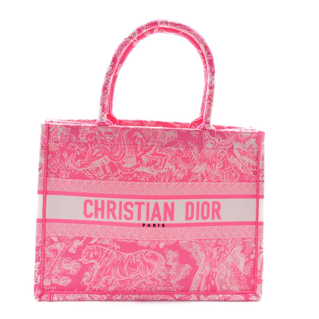 Canvas Embroidered Medium Dioriviera Toile De Jouy Book Tote Fluorescent Pink