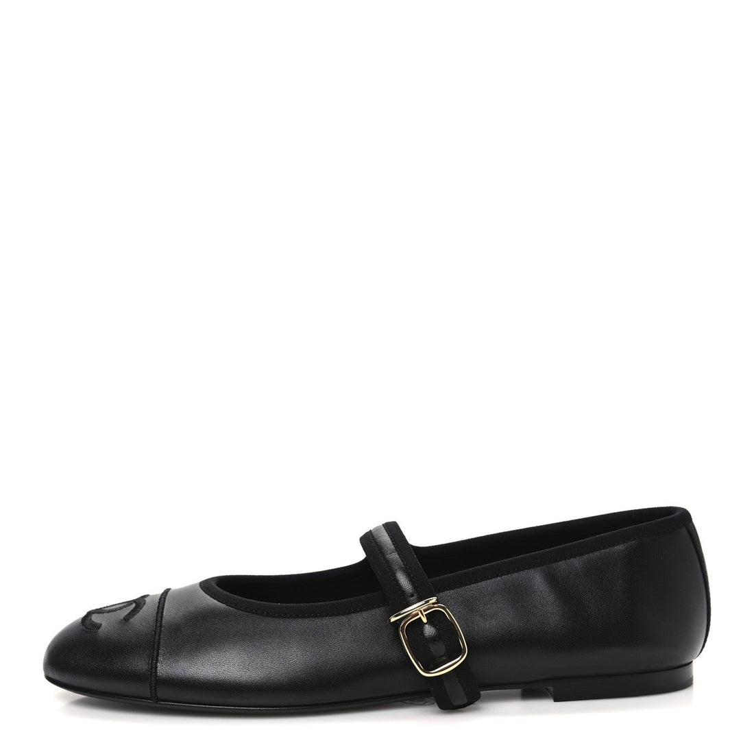 Lambskin Cap Toe CC Uniform Pumps 38 Black
