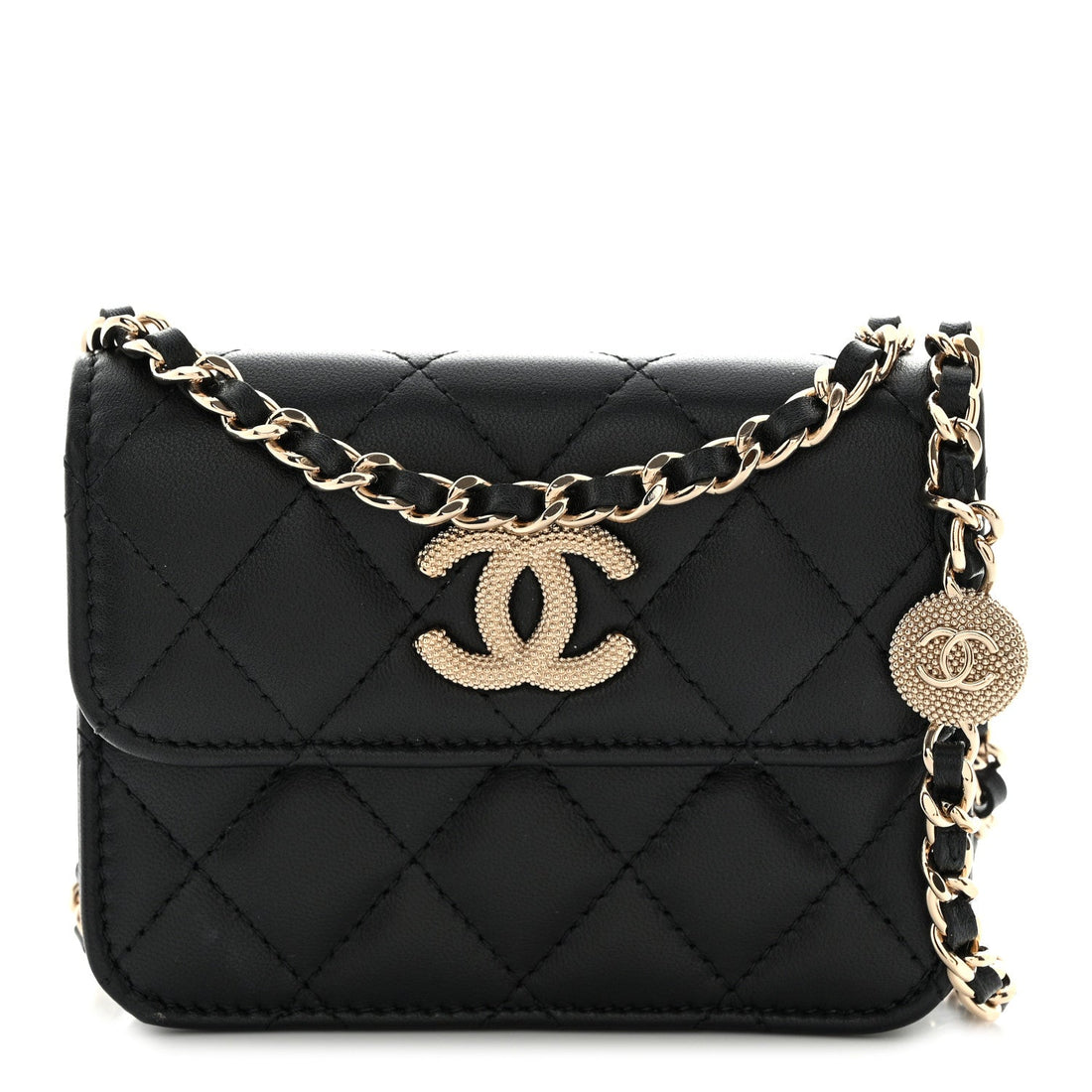 Lambskin Quilted Crystal CC Charm Clutch With Chain Black