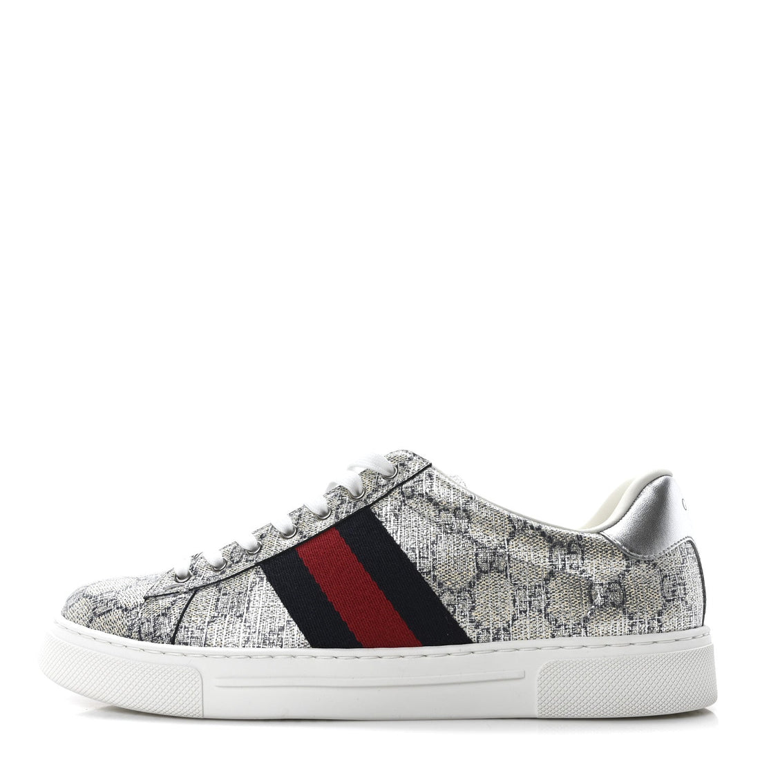 GG Supreme Monogram Metal Web Mens Ace Sneakers 7.5 Beige Blue Silver