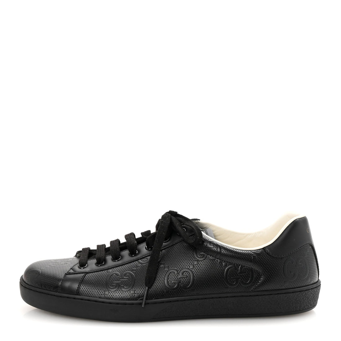 Calfskin GG Tennis Embossed Mens Ace Sneakers 11 Black