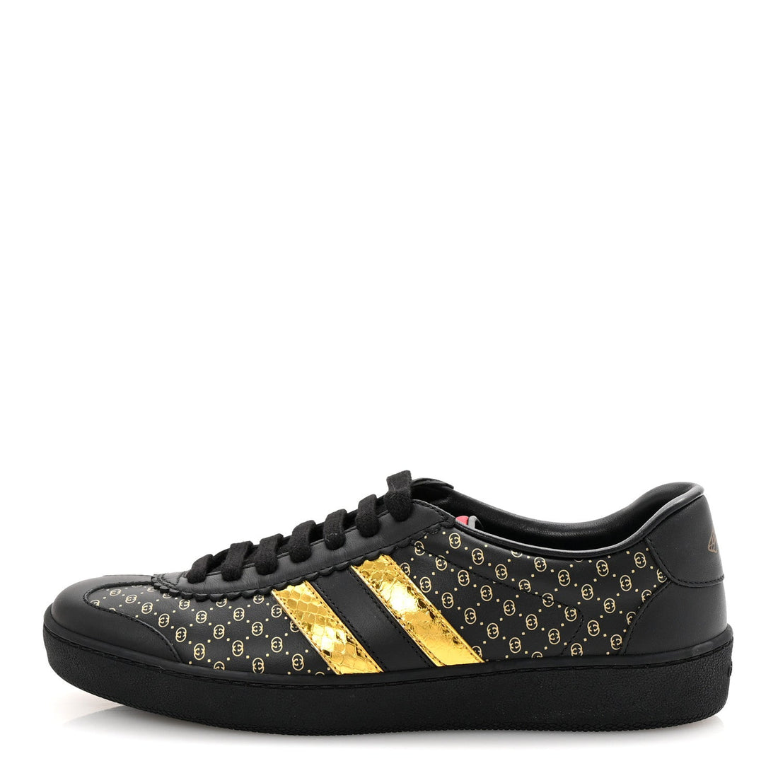 X DAPPER DAN Calfskin Laminated Ayers GG Micro Monogram Womens G74 Sneakers 36.5 Black Gold