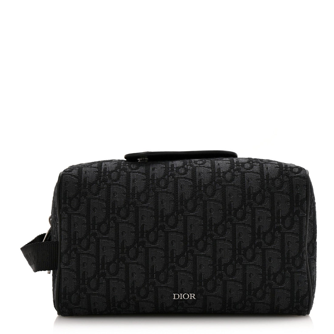 Oblique Jacquard Grained Calfskin Lingot Manity Toiletry Case Black