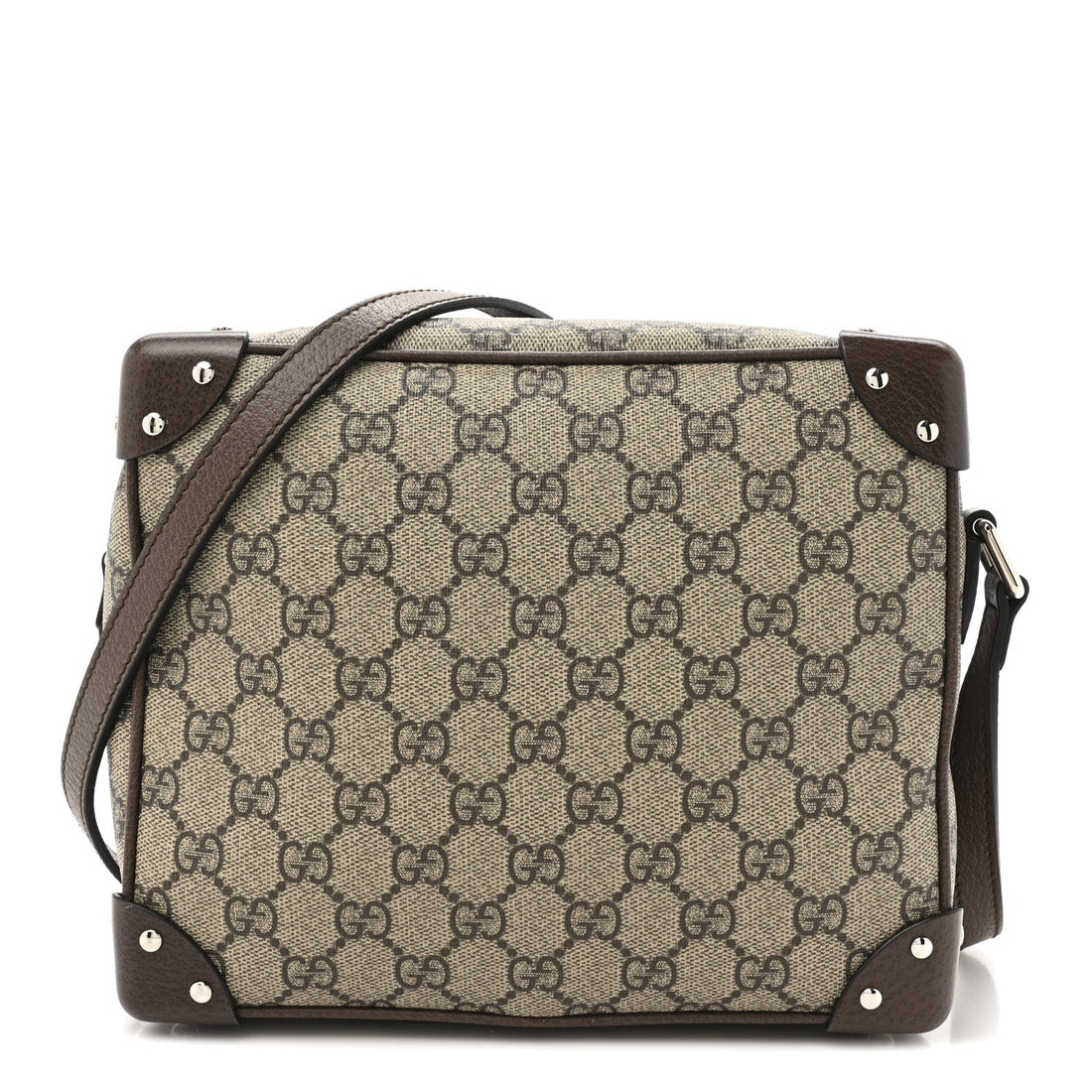 GG Supreme Monogram Textured Calfskin Square Messenger Bag Beige Ebony New Acero