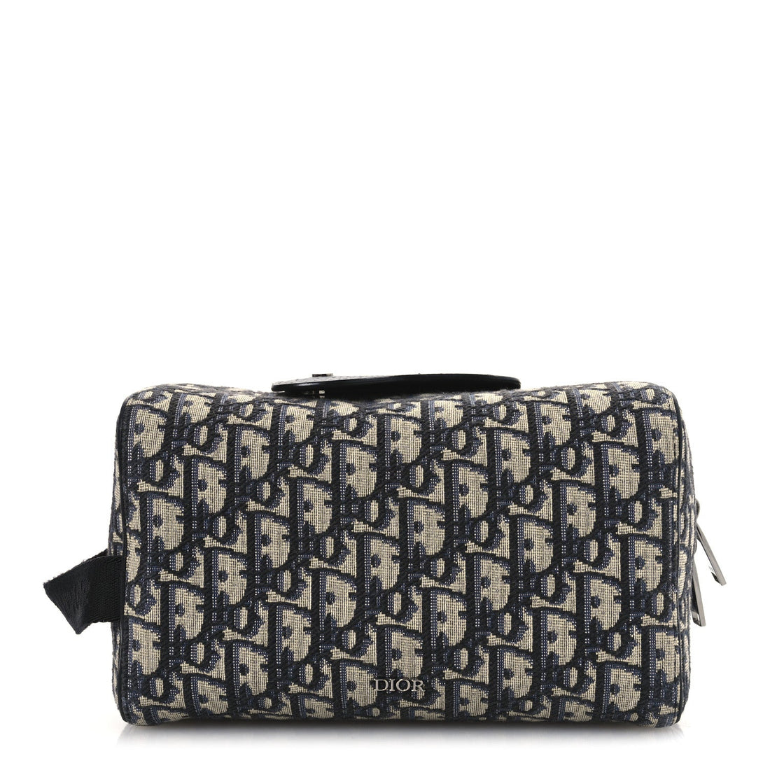 Oblique Jacquard Grained Calfskin Lingot Toiletry Case Blue Black