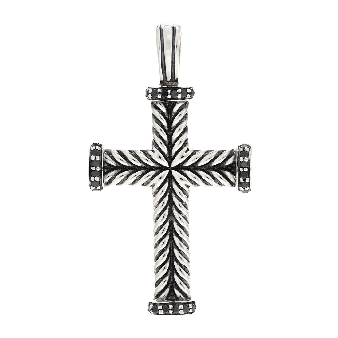 Sterling Silver Black Diamond Mens Chevron Cross Pendant