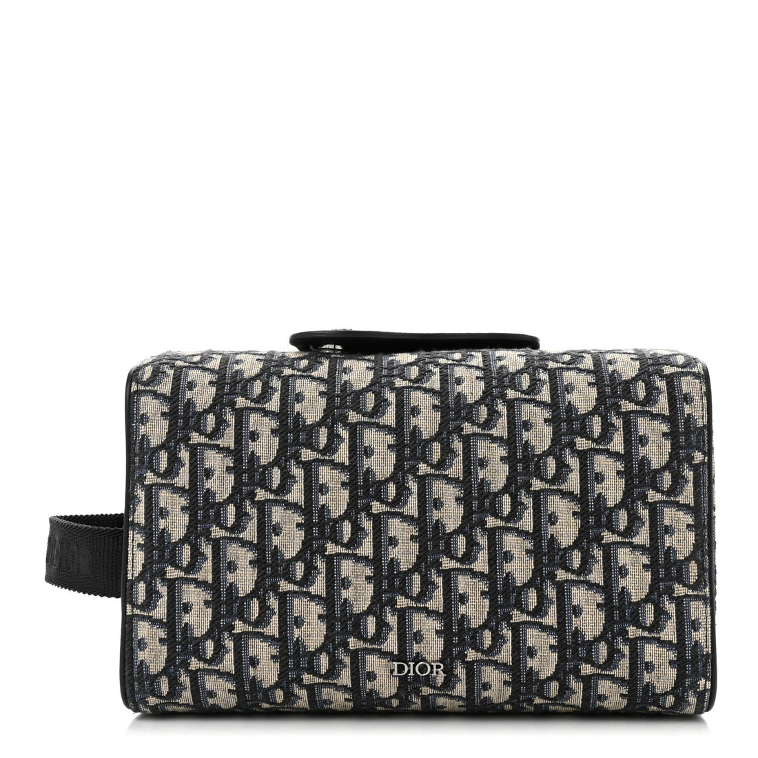 Oblique Jacquard Grained Calfskin Lingot Toiletry Case Blue Black