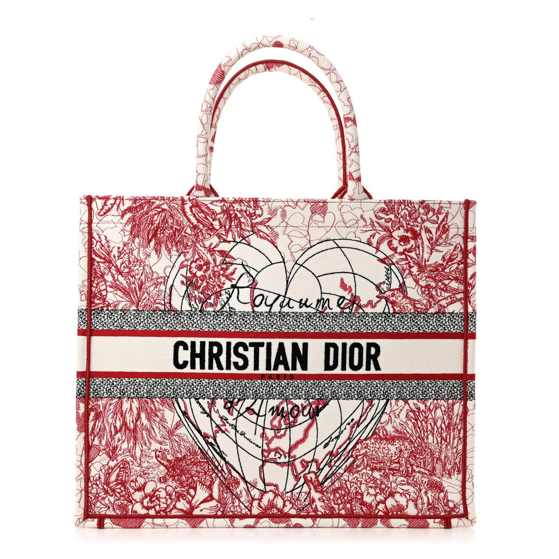 Canvas Embroidered Large Dioramour D-Royaume Book Tote Red Multicolor