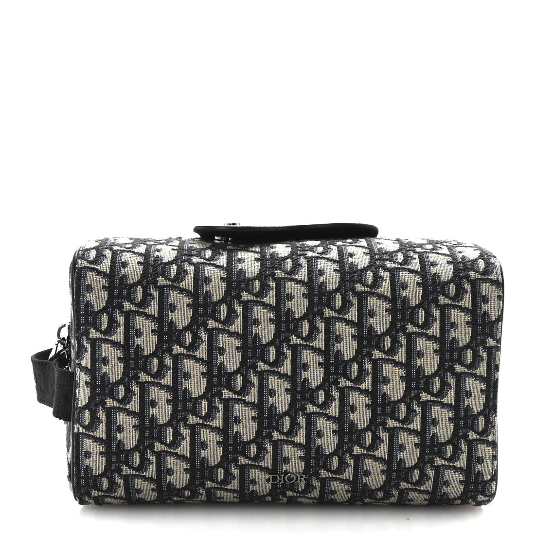 Oblique Jacquard Grained Calfskin Lingot Toiletry Case Blue Black