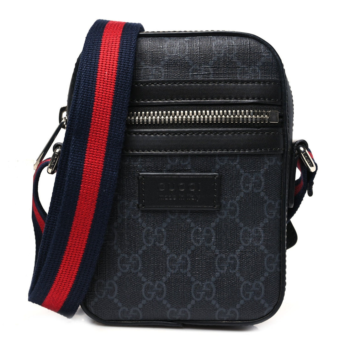 GG Supreme Monogram Appia Calfskin Web Small Camera Messenger Bag Black Grey