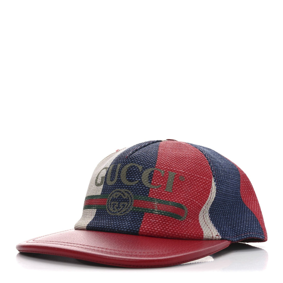 Canvas Textured Calfskin Sylvie Stripe Logo Baseball Hat S White Red
