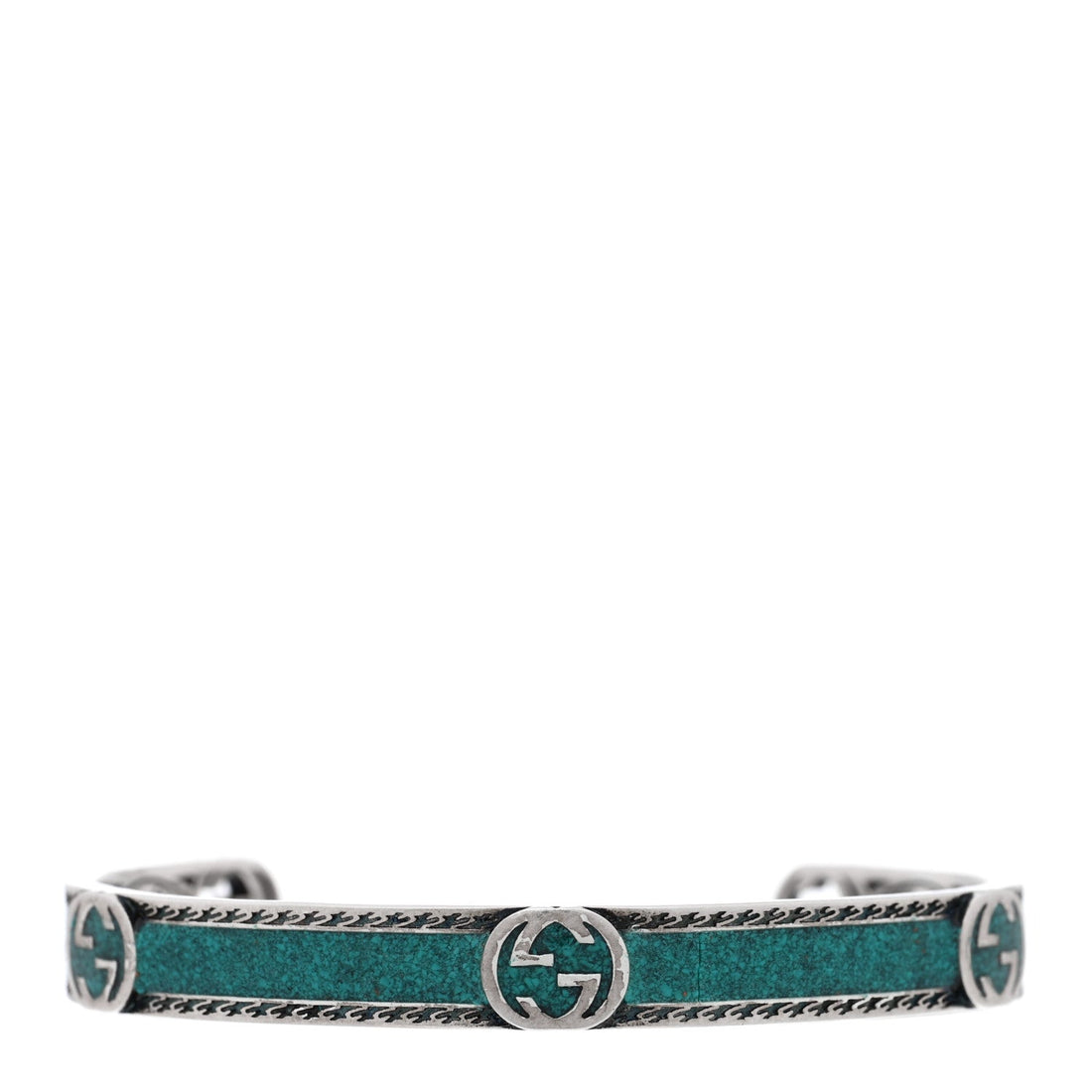 Sterling Silver Enamel Interlocking G Cuff Bracelet Green