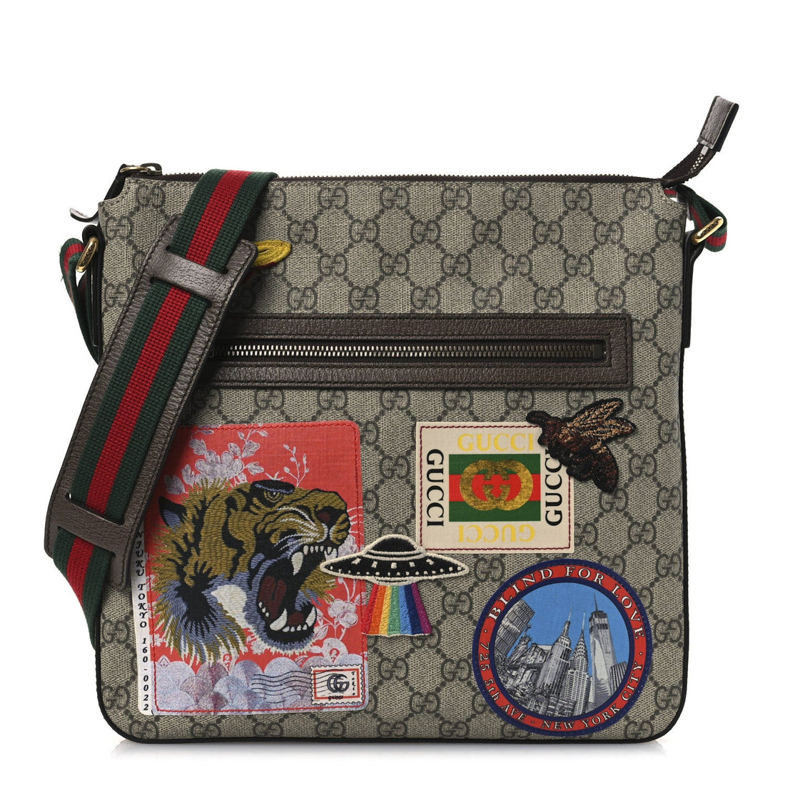 Soft GG Supreme Monogram Courrier Web Medium Flat Messenger Bag Beige New Acero Multicolor