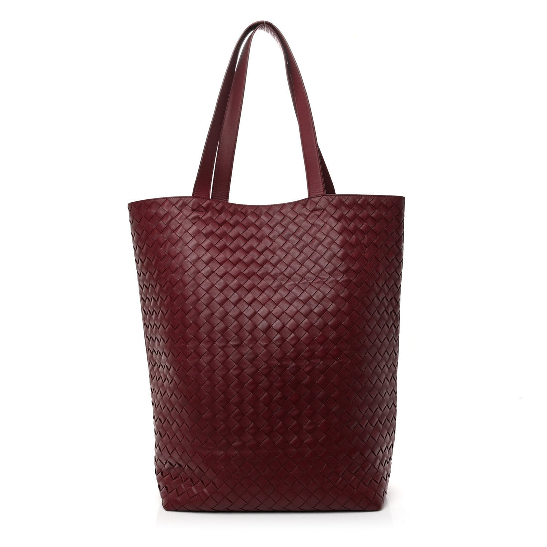 Calfskin Intrecciato Large North South Tote Bag Burgundy