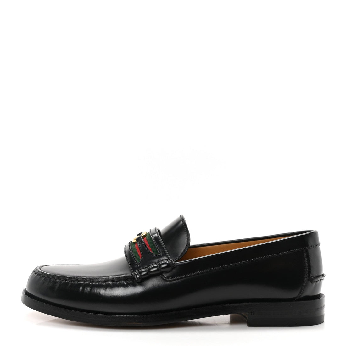Calfskin Web Mens Interlocking GG Loafers 11 Black