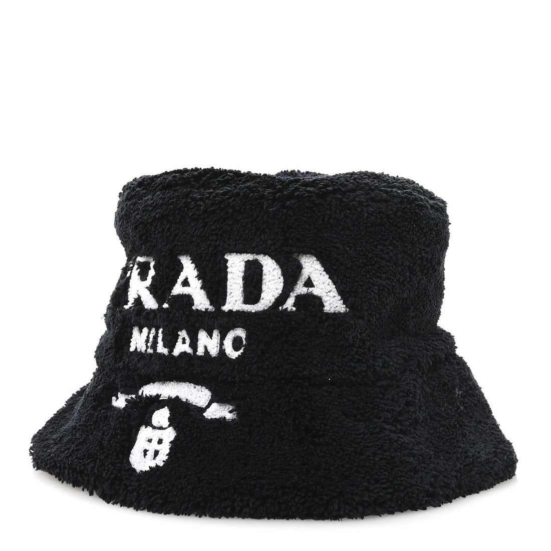 Terry Cloth Logo Embroidered Womens Bucket Hat S Black White