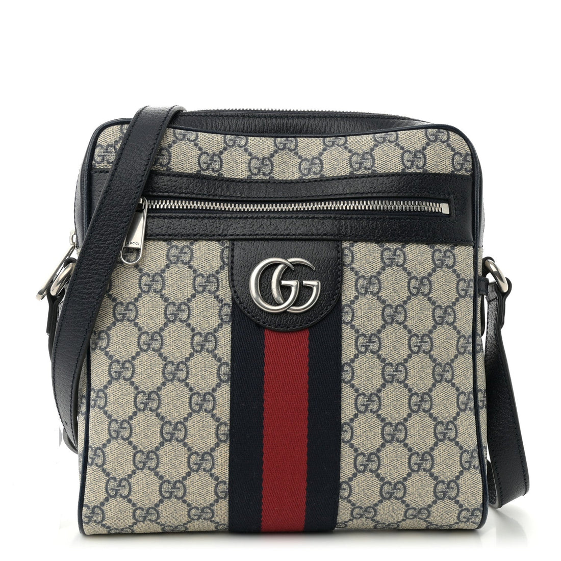 GG Supreme Monogram Textured Dollar Calfskin Web Small Ophidia Messenger Bag Beige Blue