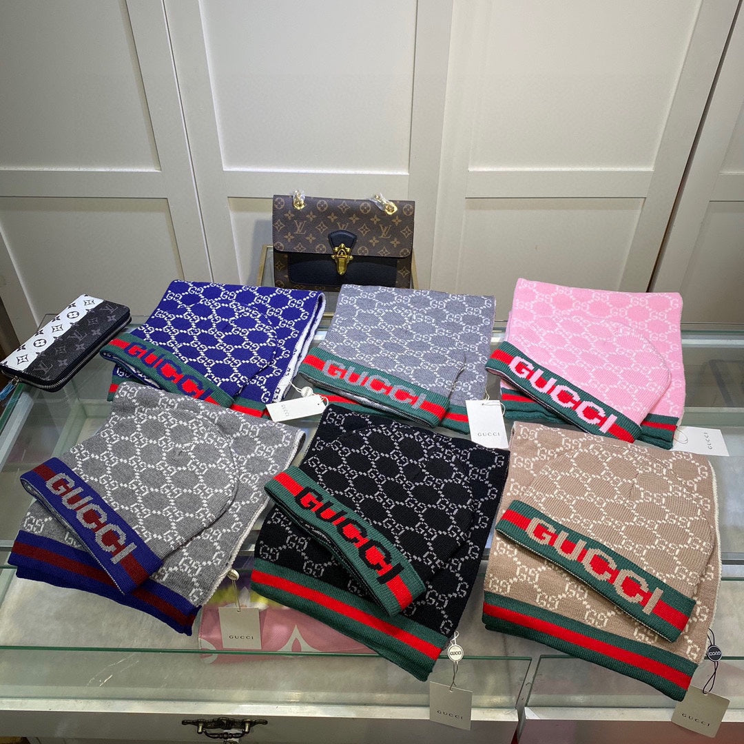 Set Scarf And Hat In Navy Blue Monogram Cashmere 349665