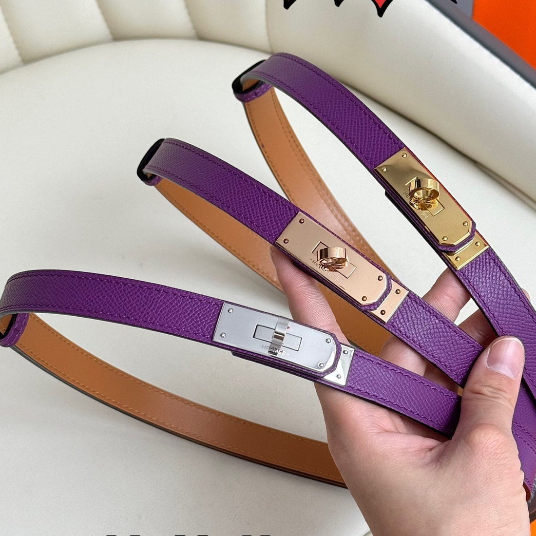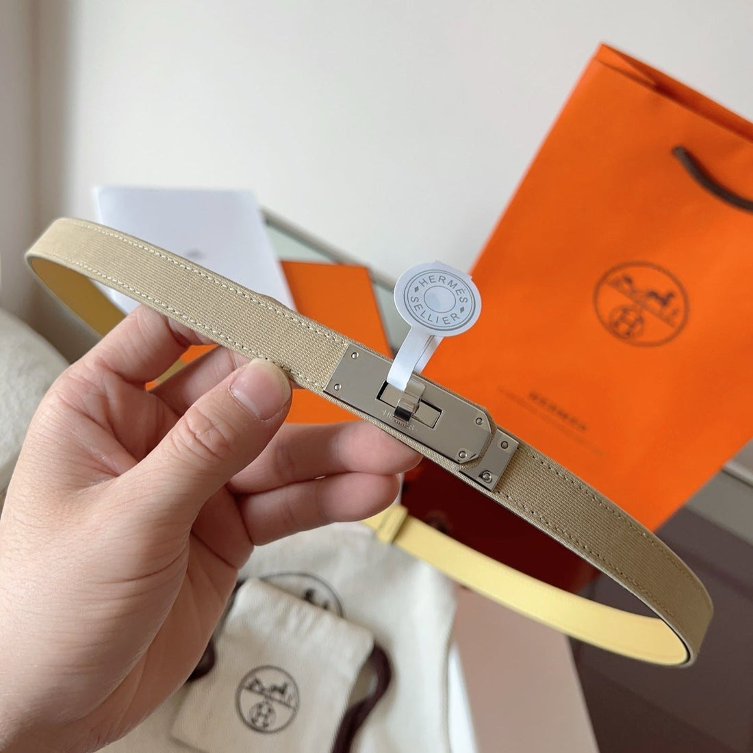 HM Kelly Belt 18mm Beige Canvas Epsom Leather Gold Buckle
