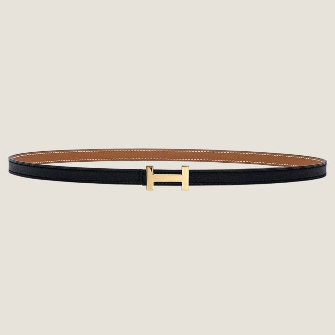HM FOCUS BUCKLE & REVERSIBLE BLACK AND KHAKI BROWN LEATHER STRAP 13MM GOLD HARDWARE