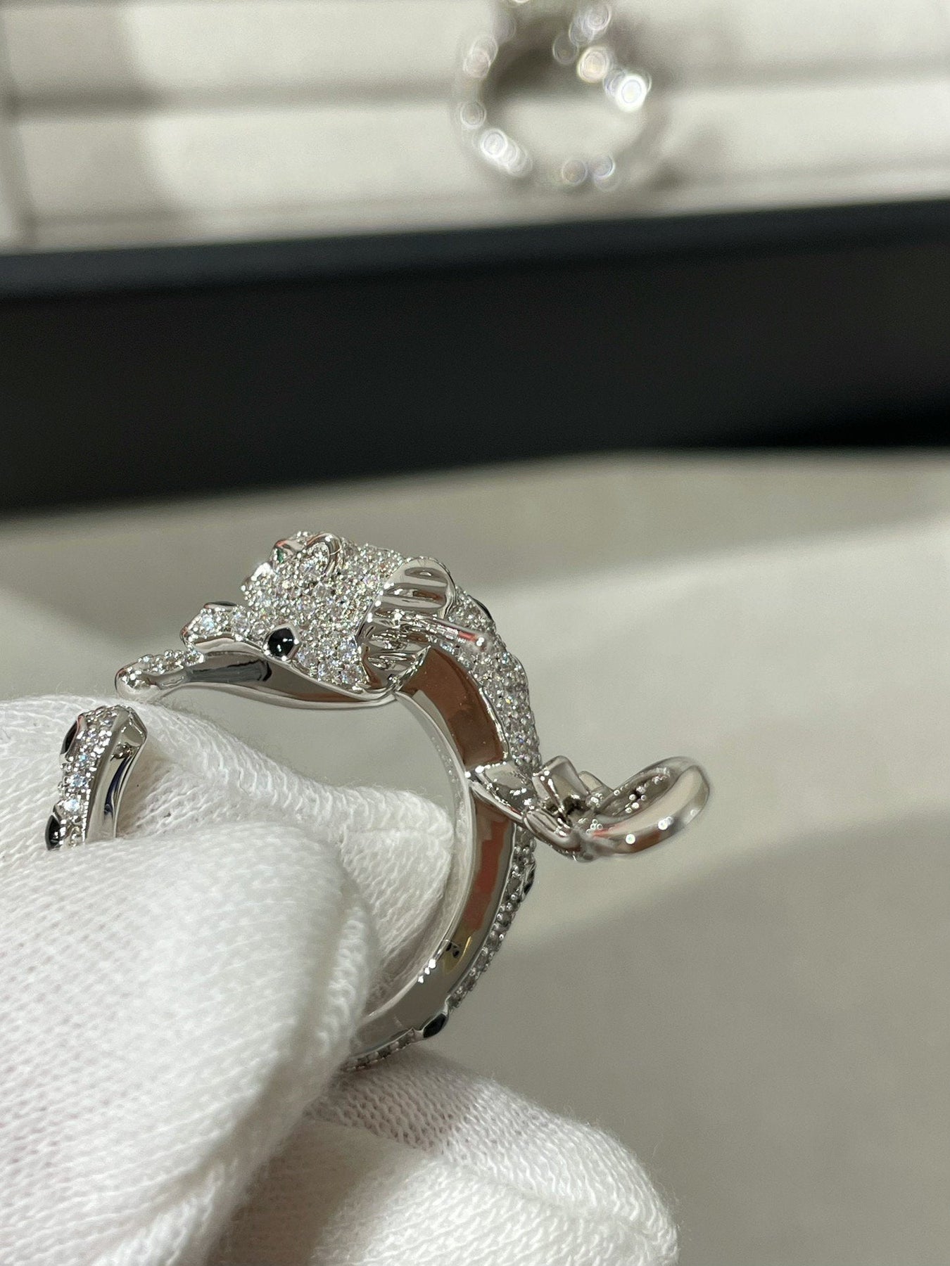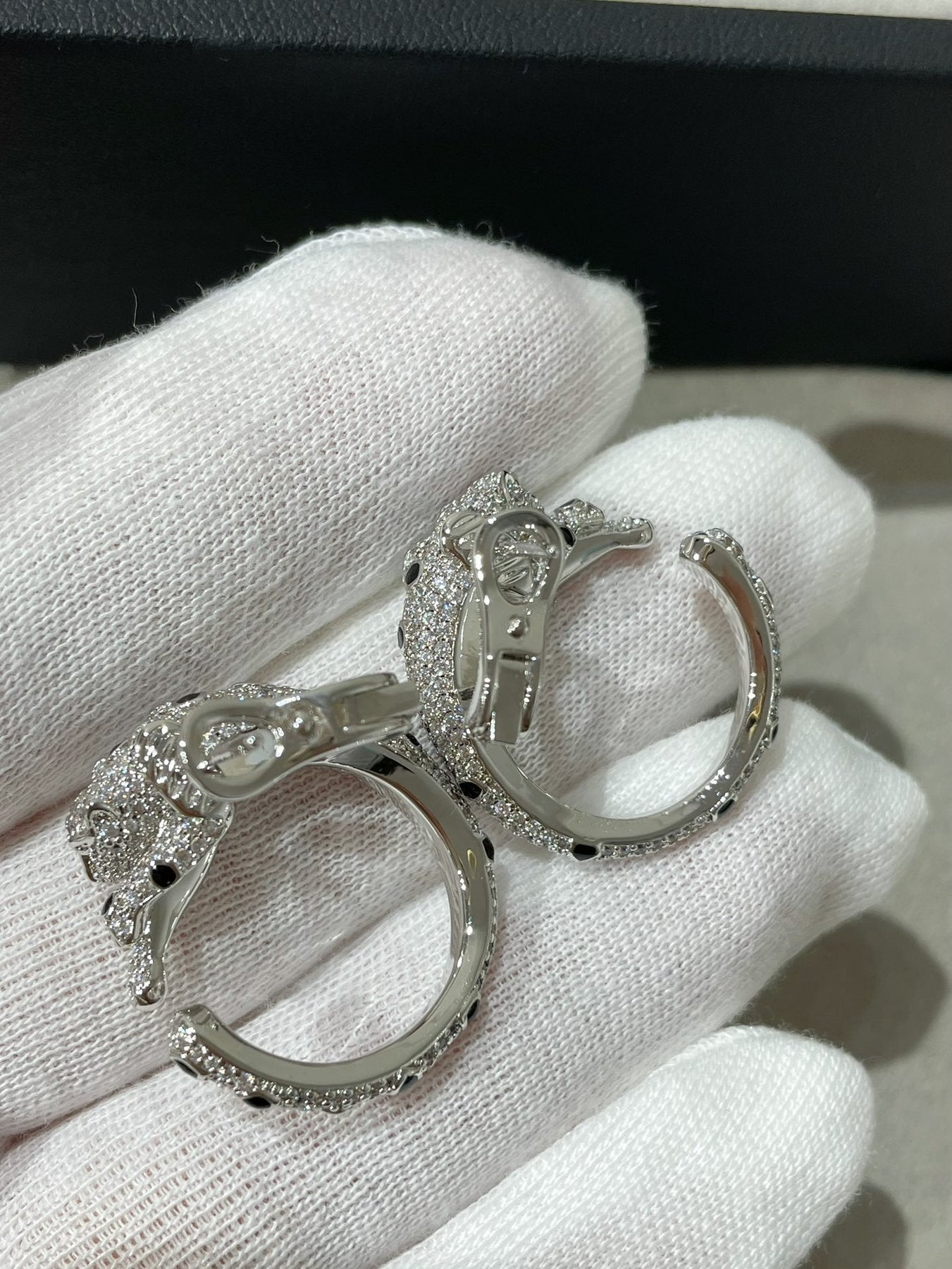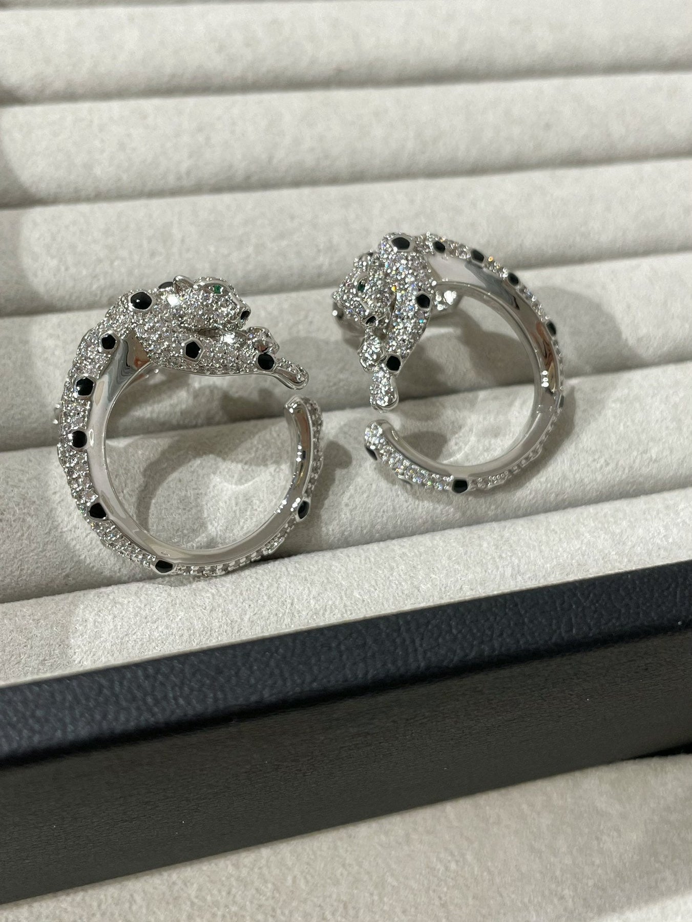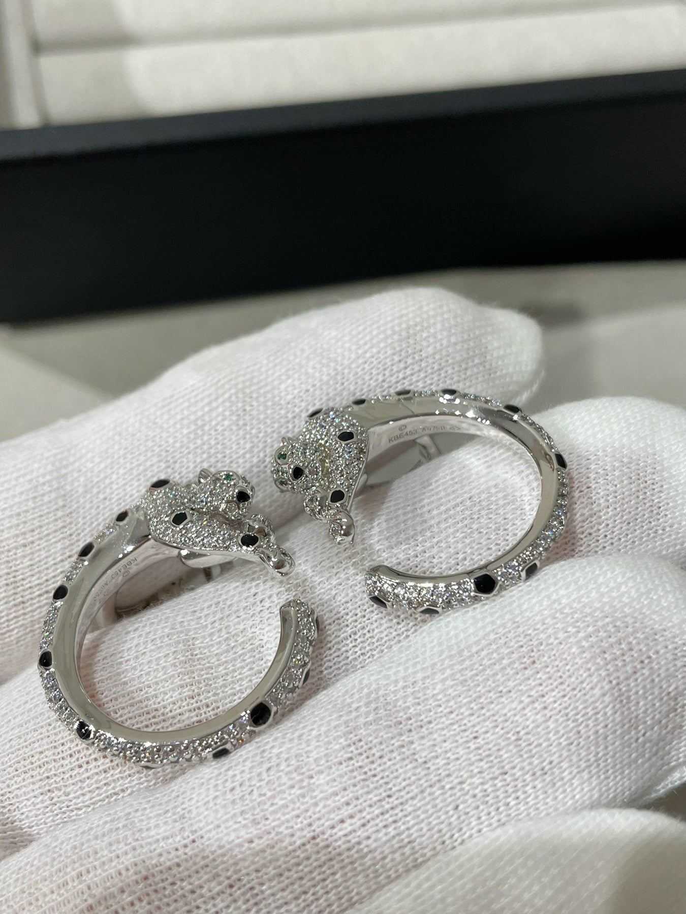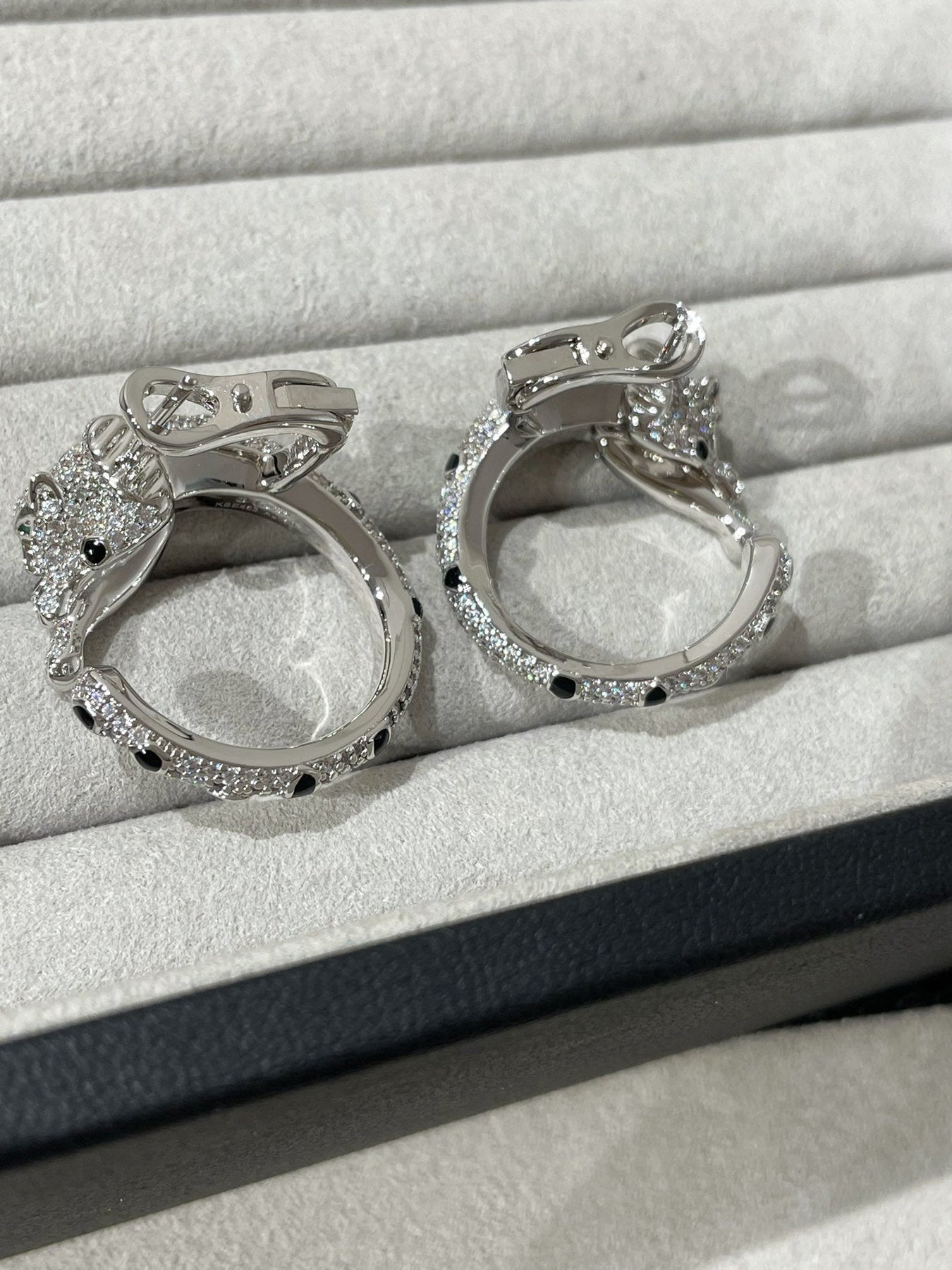 Panthere Diamond Onyx Green Emeral Silver Earrings