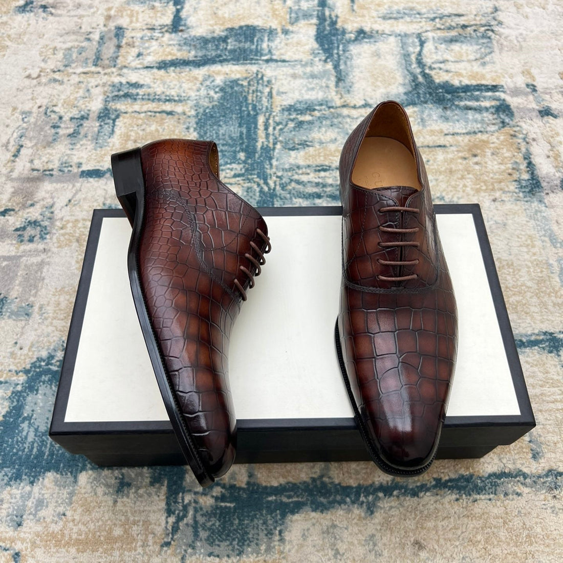 GG Men's Dress Shoe Brown Crocodile Embossed Calfskin 533108