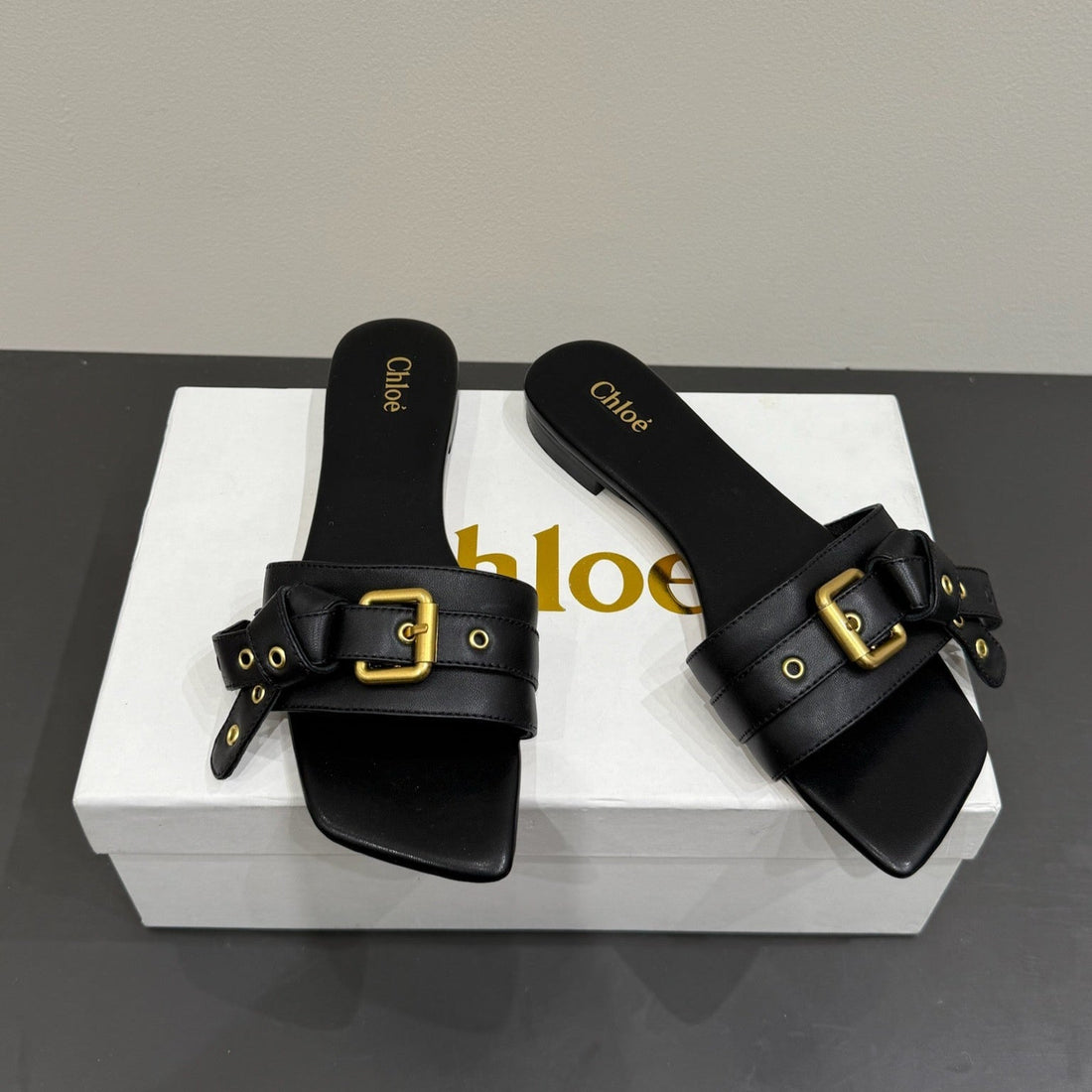 Loewe 25 Bow Metal Buckle Slide Black Cowhide