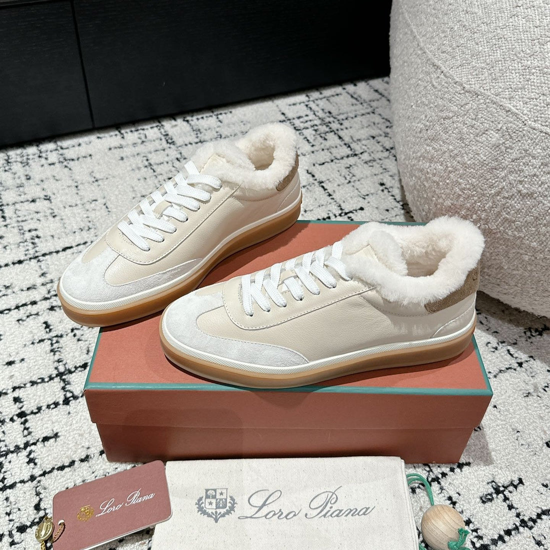 LP Tennis Walk Sneaker In Beige White Lambskin Lined With Wool Fleece 985660