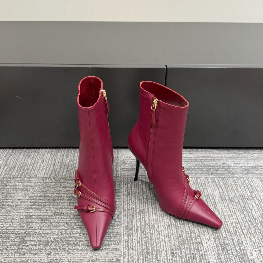 Miu 90 short boots deep magenta or berry cowhide 417984