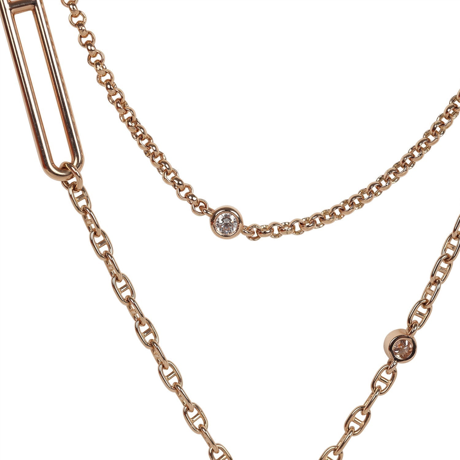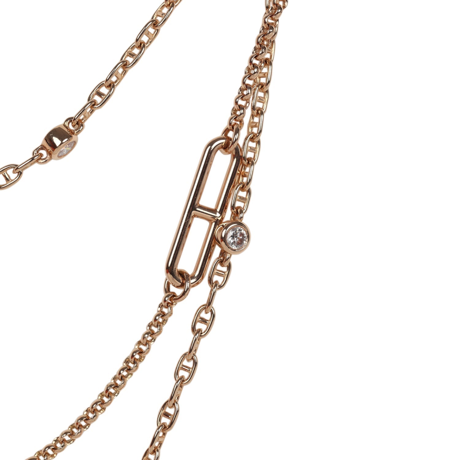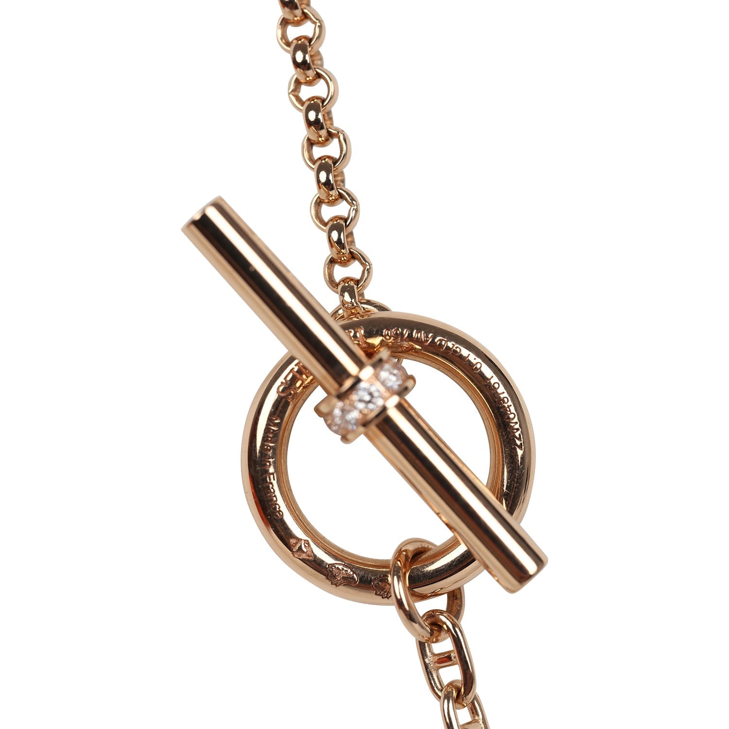 This Hermes Chaine D'Ancre Chaos Necklace is in 18K rose gold hardware, featuring a chaine d'ancre chainlink short necklace set with 12 diamonds with a total of 0.46 carats and has a bar and toggle closure.