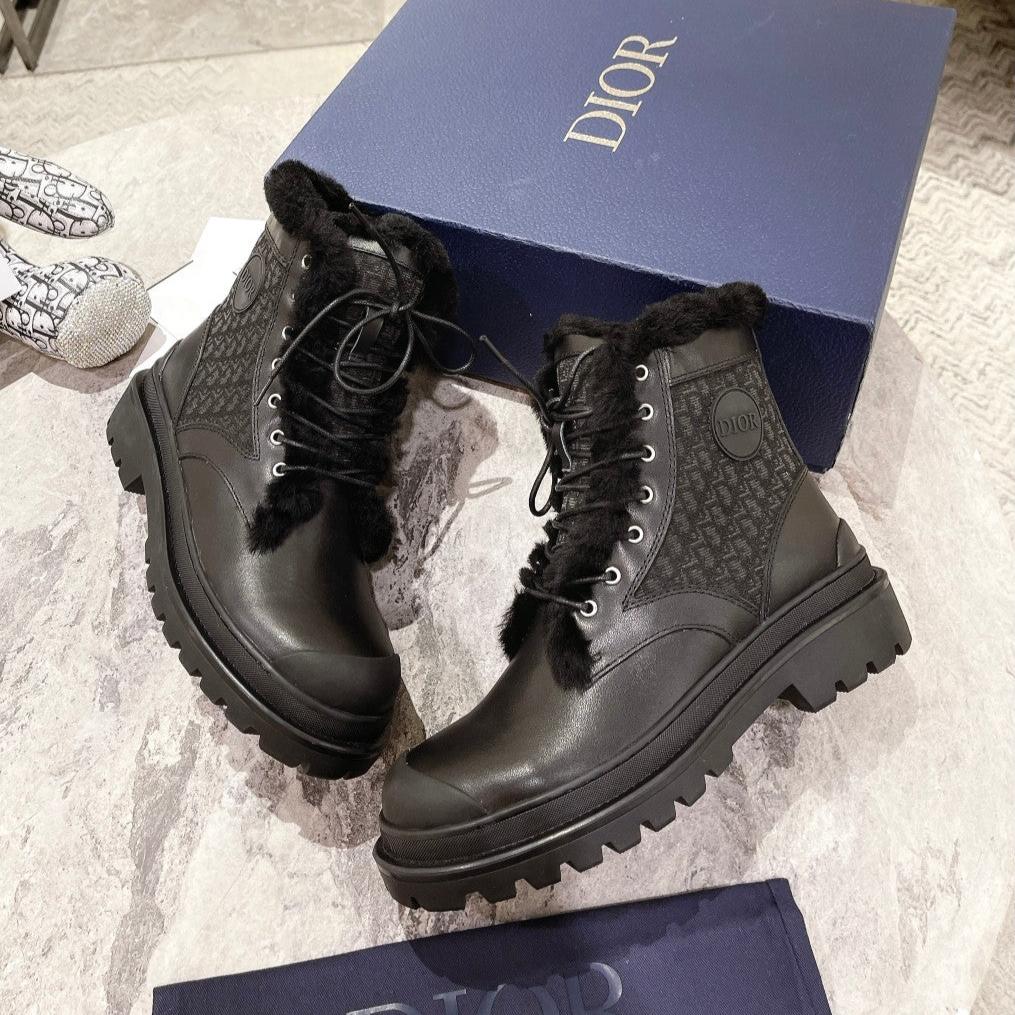 CD Explorer Ankle Boot 50mm Black White Fleece Lining Oblique Jacquard Fabric And Cowhide