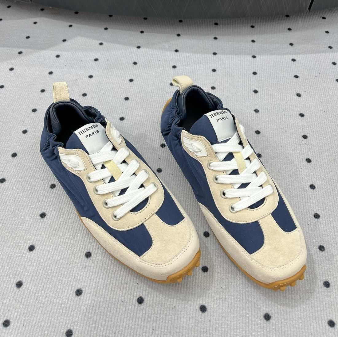 HM Sneaker 10mm In Deep Blue Mix Beige Suede And Windbreaker Fabric 954750