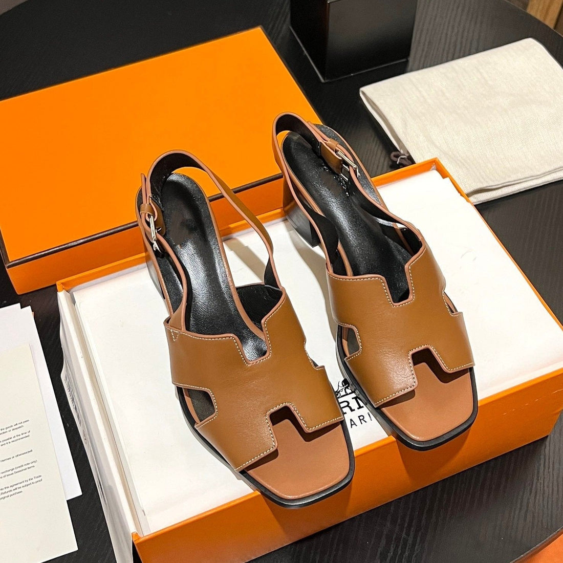 Vlogo Cut-Out Tan Calfskin Slide Sandal