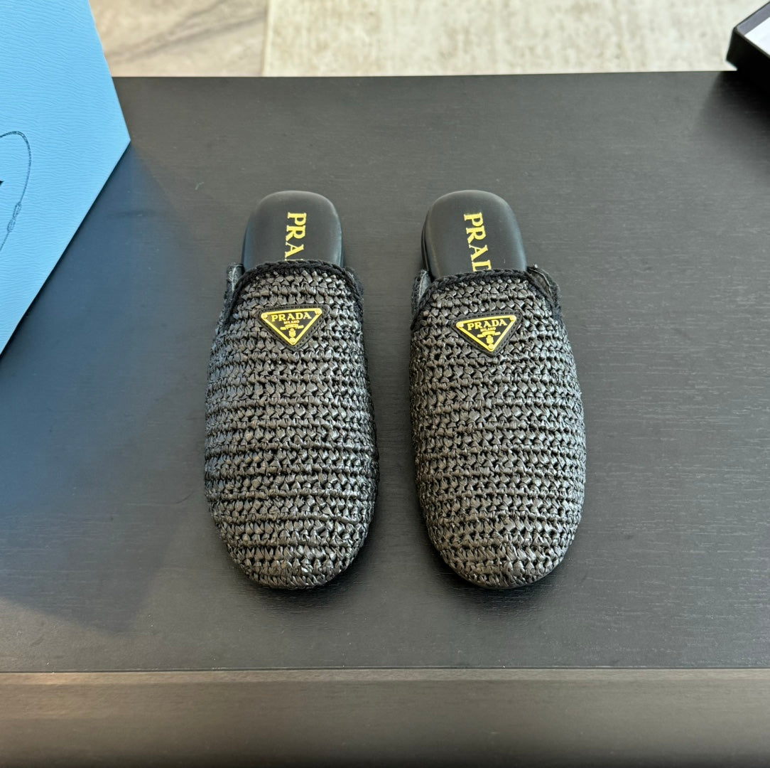 PRA CROCHET SPECIAL MULES BLACK LAMBSKIN
