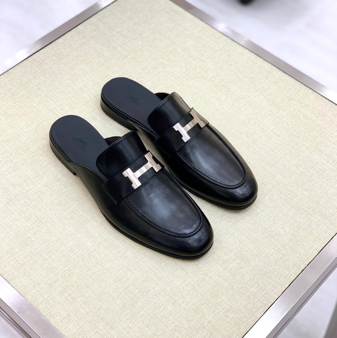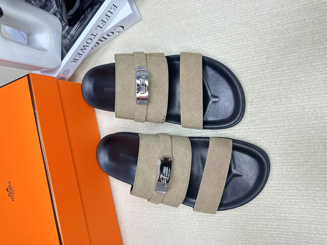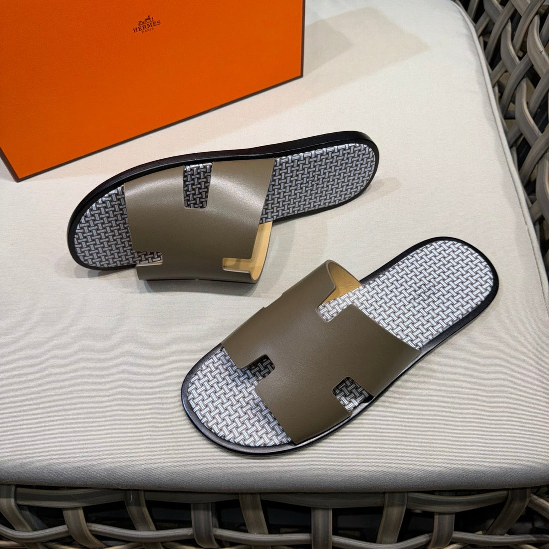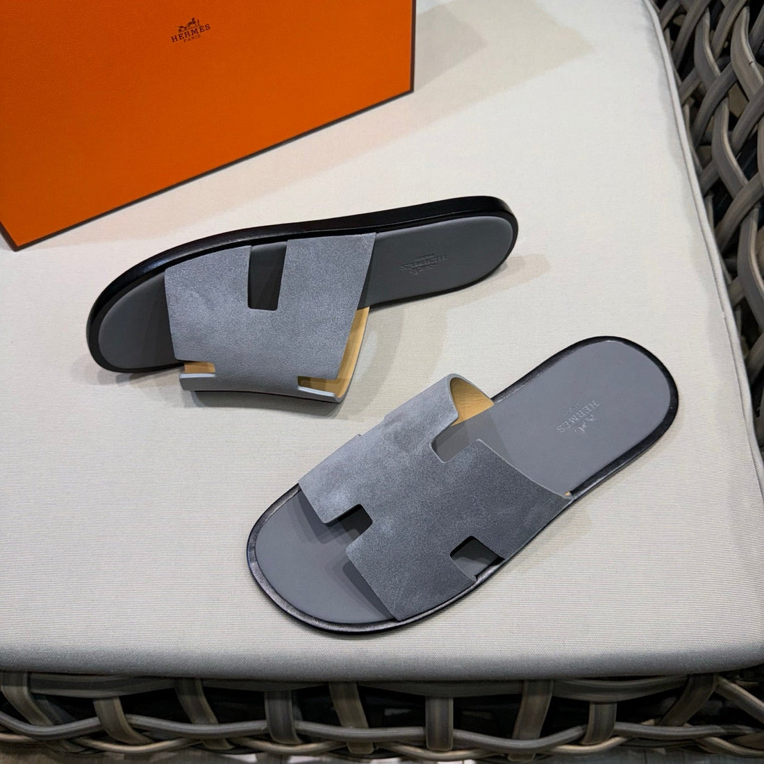 HM Men's Chypre Slide Black Grey Cowhide 540211